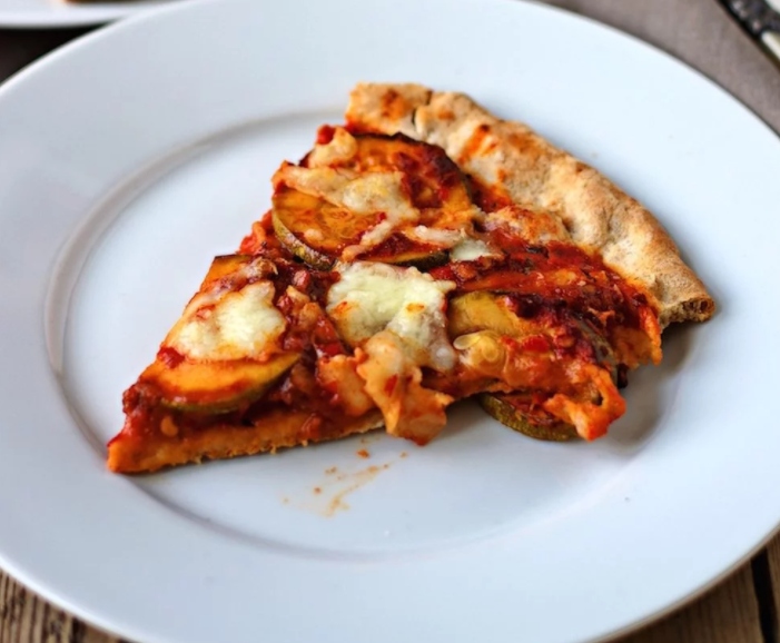 This is another delicious pizza. Just when I thought I’ve seen it all (it turns out I haven’t)! This vegan pizza option isn’t made with your average pizza dough. It’s made with sweet potatoes. How do you bake sweet potatoes into a pizza crust? I have not a clue. This pizza recipe is topped with hearty artichokes, fresh basil, tomatoes, and your choice of pizza sauce.